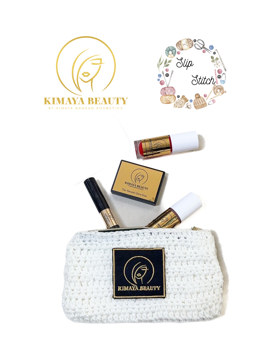 Find your “Kimaya Beauty Faves” in one, plush, perfect makeup pouch now!